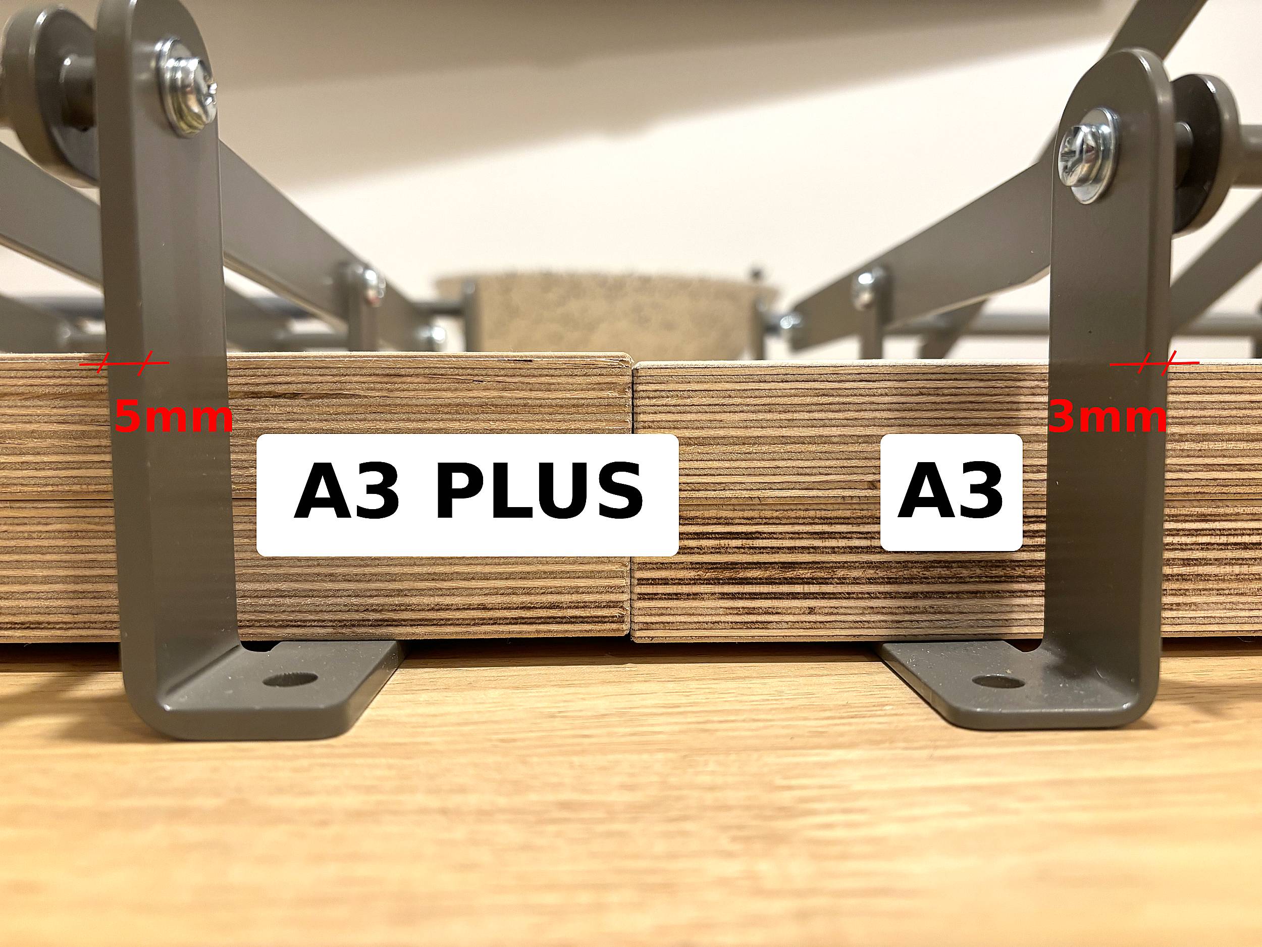 The main difference between Paper Press A3 (APPPA301) and Paper Press A3 PLUS (APPPA302) is the metal frame thickness which is 5mm for that extra power.